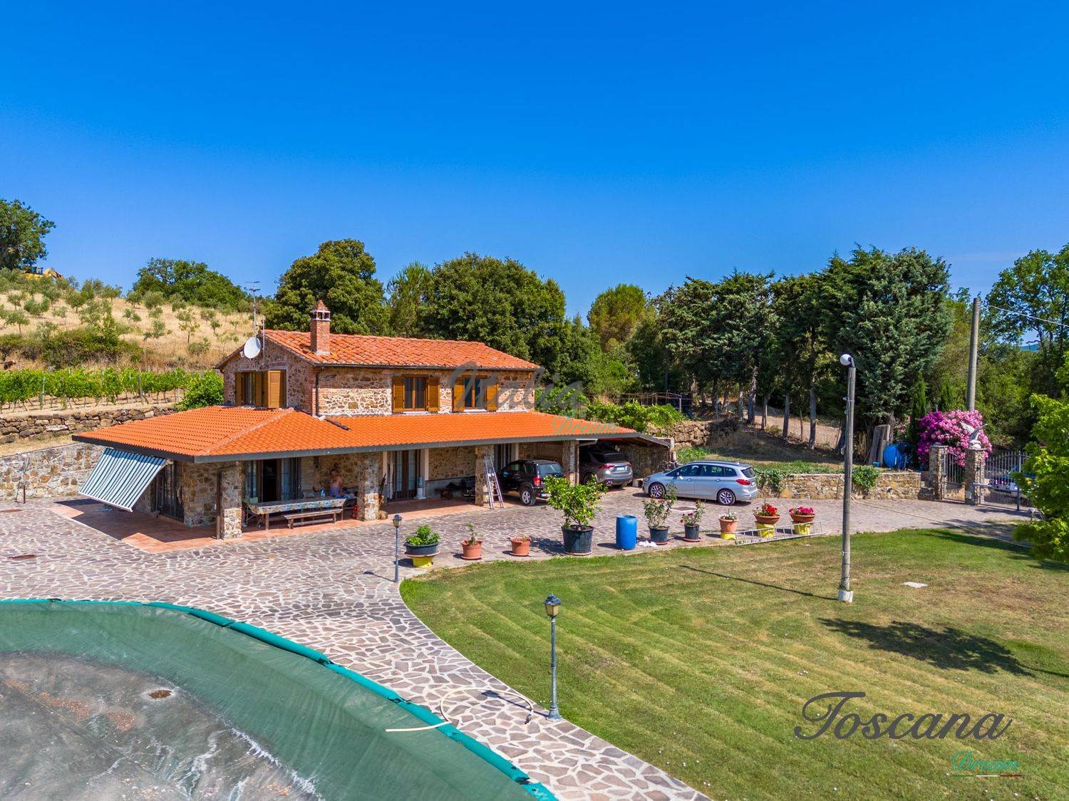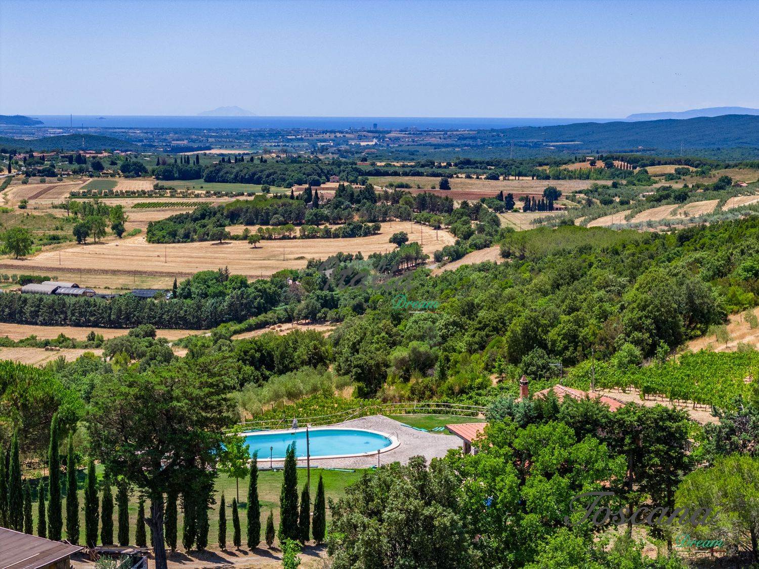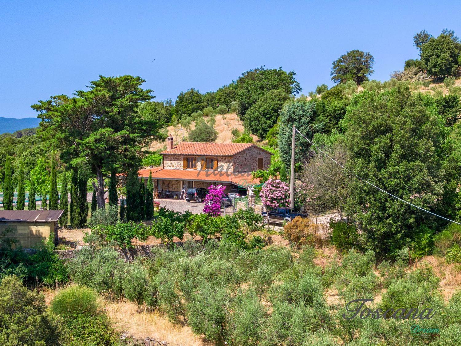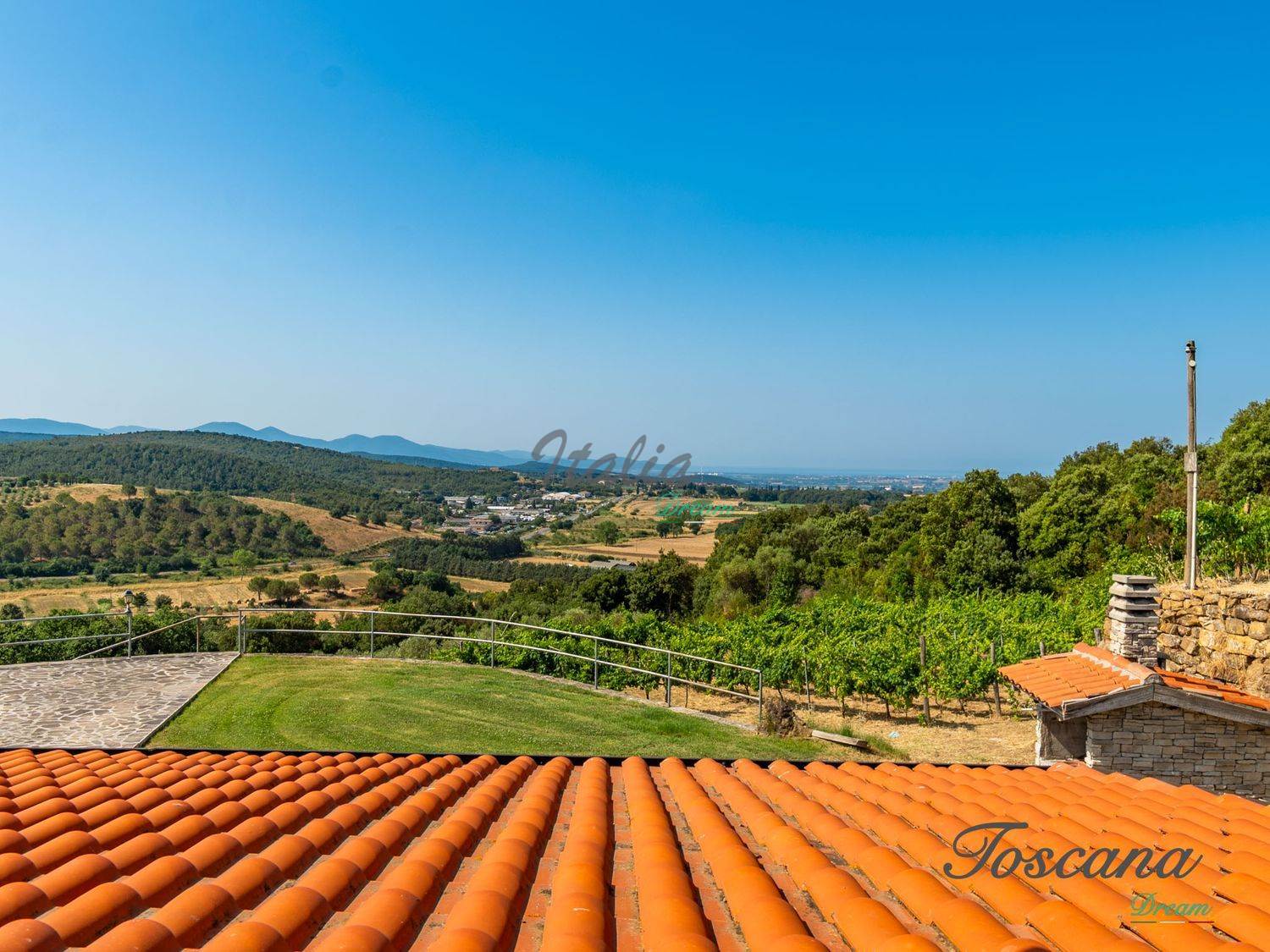 Splendid stone villa built in 2000, with a breathtaking view of the Gulf of Follonica and the enchanting island of Montecristo, pearl of the Tuscan Archipelago. At the rear, the property offers a magnificent view of Massa Marittima, one of the most charming villages in the Maremma.