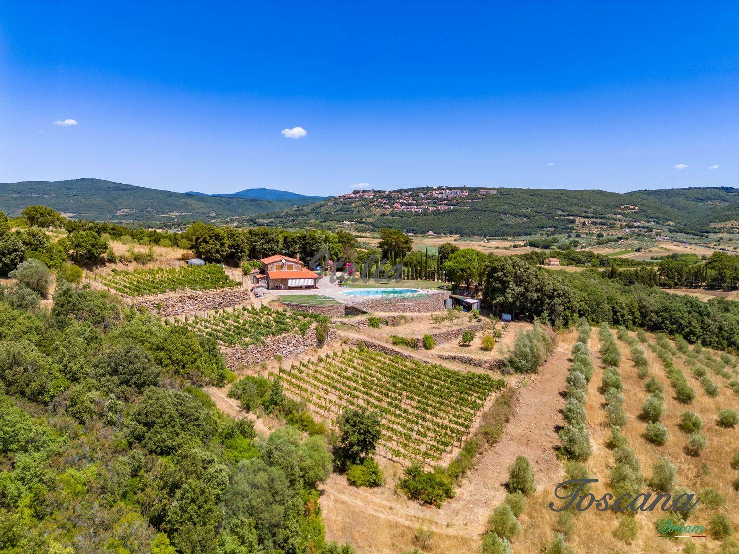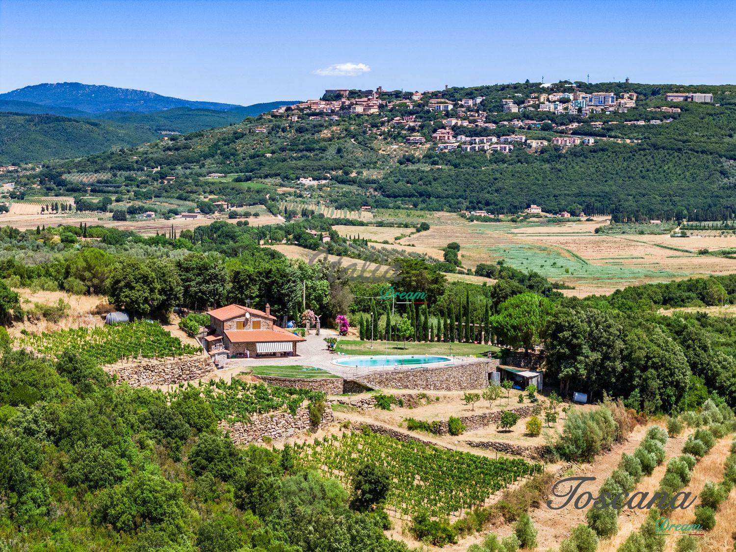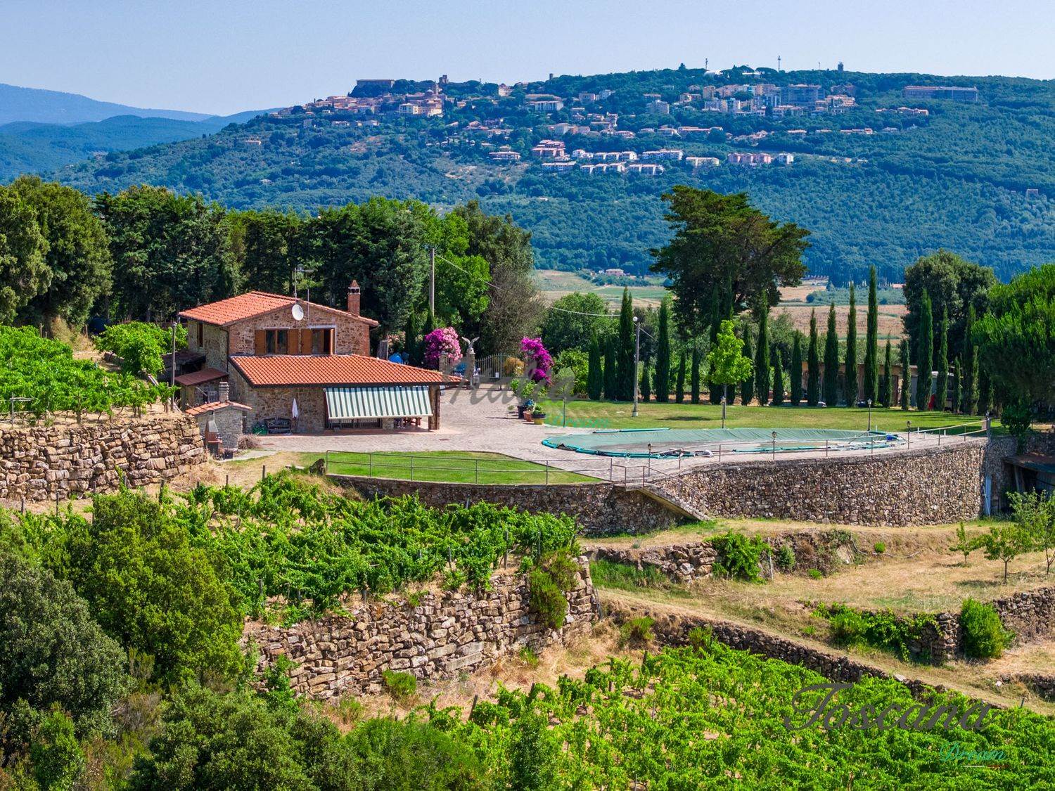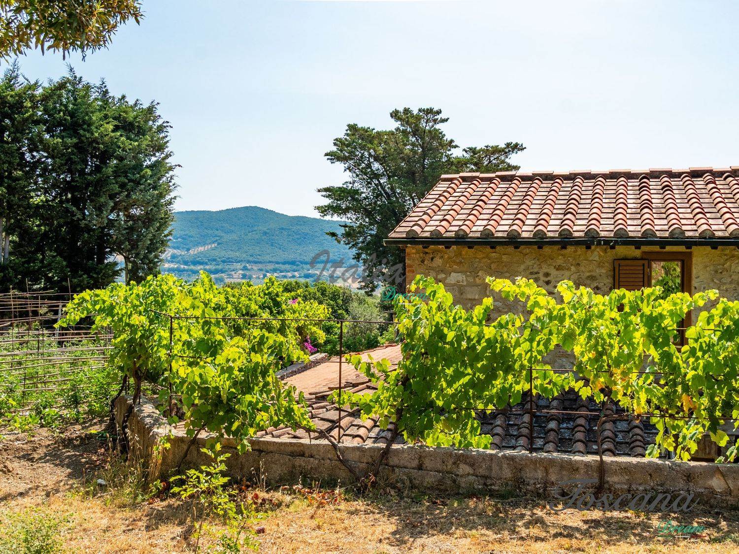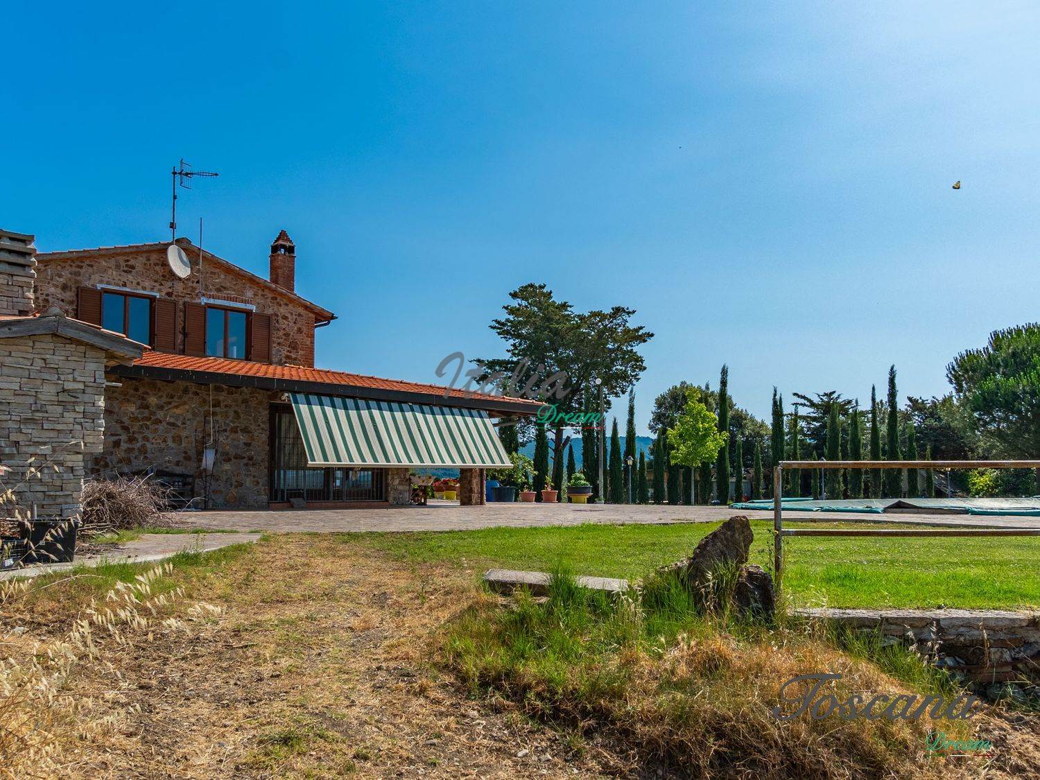 Splendid stone villa built in 2000, with a breathtaking view of the Gulf of Follonica and the enchanting island of Montecristo, pearl of the Tuscan Archipelago. At the rear, the property offers a magnificent view of Massa Marittima, one of the most charming villages in the Maremma.
