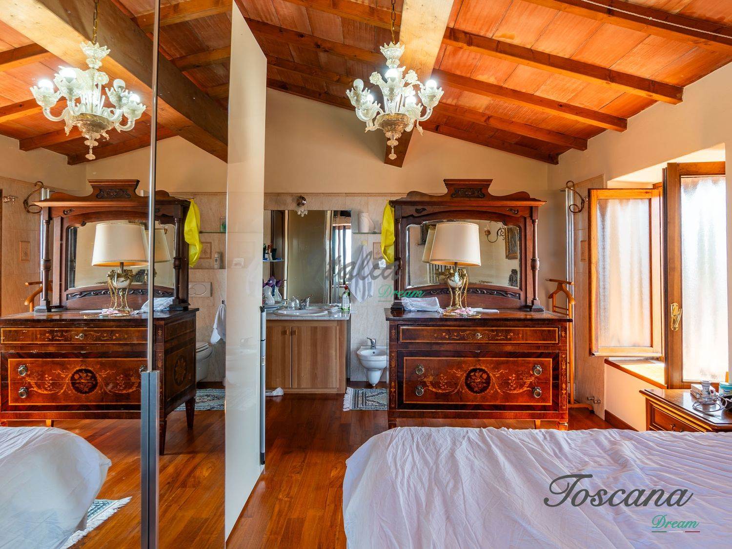 This villa is the ideal choice for experiencing an authentic Tuscan dream, immersed in the characteristic hills of the region and accompanied by a vineyard and private olive grove of great beauty.