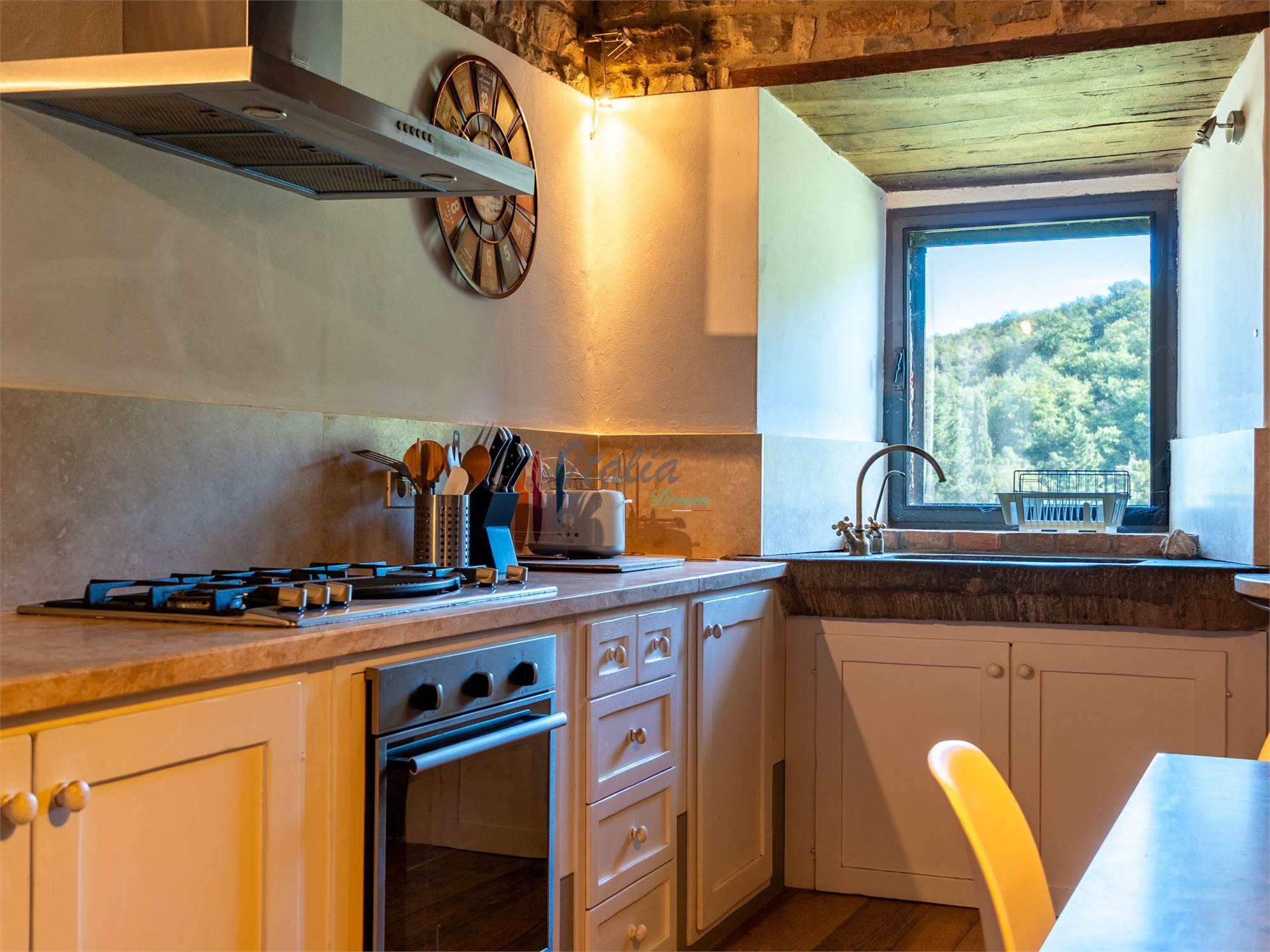 La proprietà è stata completamente ristrutturata con grande cura, in uno stile che si integra perfettamente con l’antica struttura originaria, unendo armoniosamente autenticità storica e comfort moderno.