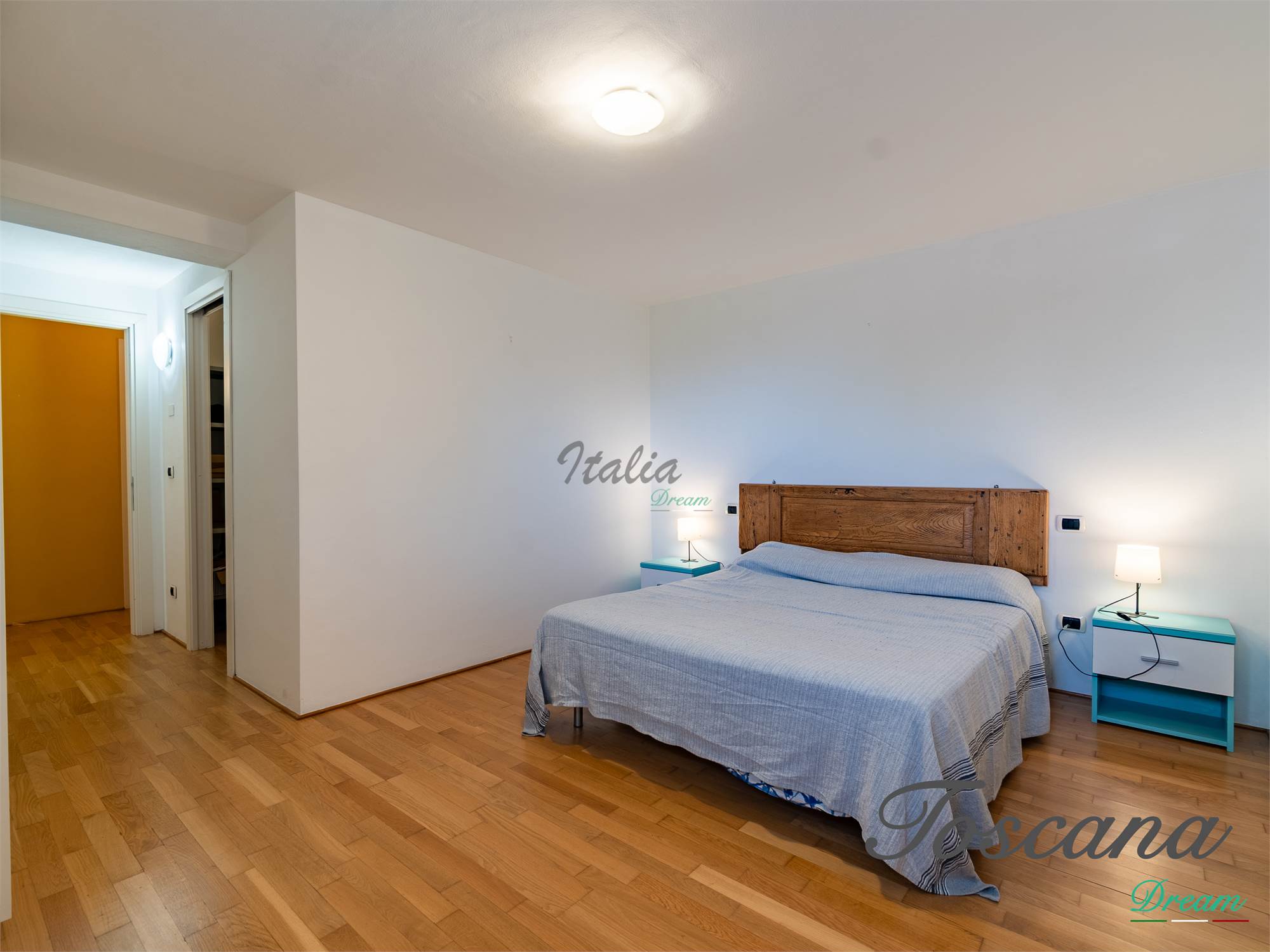 Piano Soppalco (Zona Notte): Una scala di design in acciaio e legno conduce al soppalco, che serve un ampio terrazzo solarium e due camere da letto padronali, entrambe dotate di raffinati bagni en-suite.